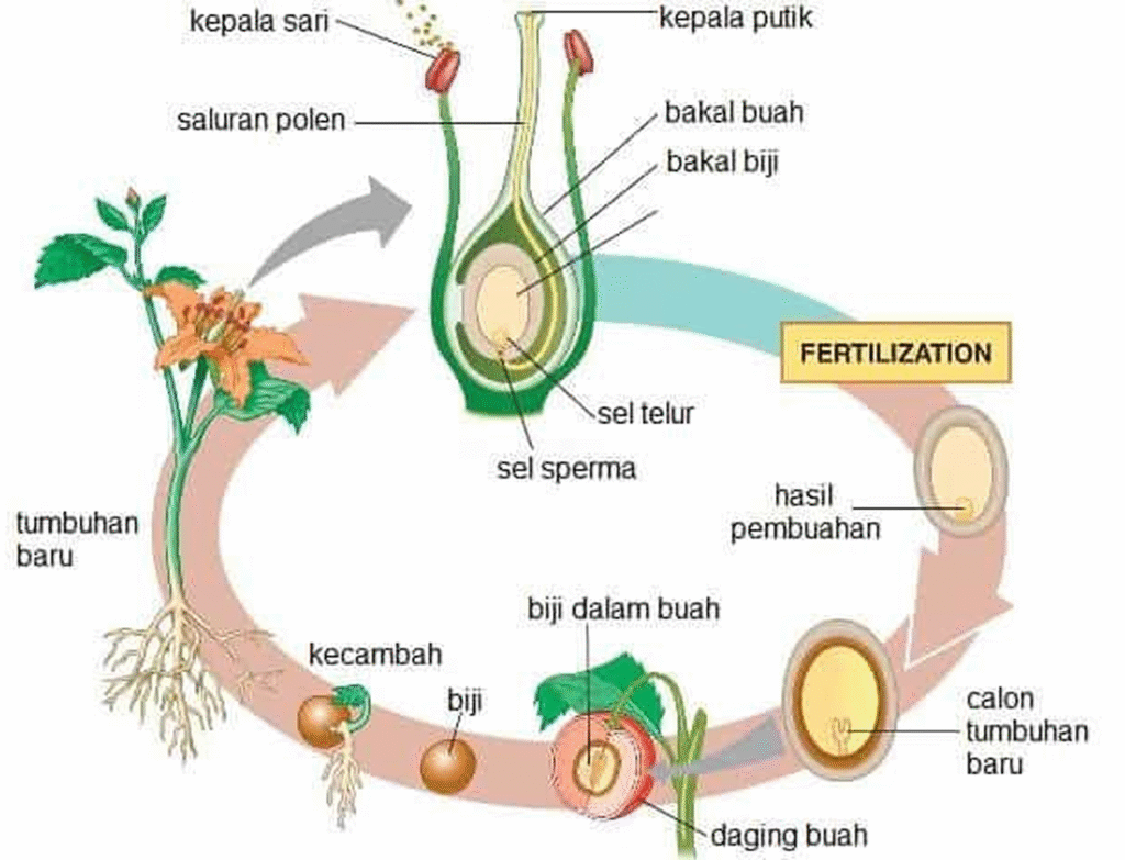 Tahapan reproduksi generatif pada tumbuhan berbunga berlangsung mulai dari pembentukan sel kelamin hingga terbentuknya biji. Proses ini melibatkan bagian-bagian bunga seperti benang sari dan putik. Dengan memahami tahapan ini, kita dapat mengetahui bagaimana biji dihasilkan.