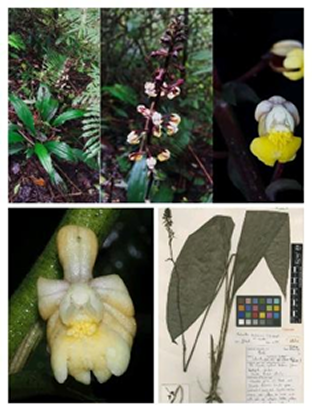 Atas/A (Anggrek Natal Bali (Calanthe baliensis)); Bawah/B (Pohon Eboni (Diospyros celebica Bakh))